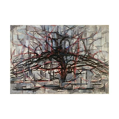 Wee Blue Coo Piet Mondrian Tree Abstract Dark Painting Wall Art Print