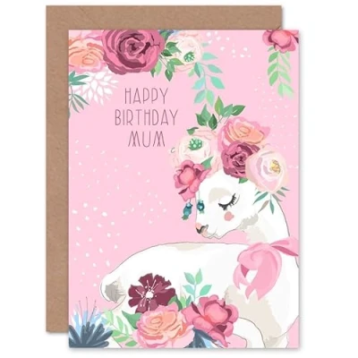 Wee Blue Coo Pink Happy Birthday Mum Llama with Rose Flowers Sealed Greeting Card Plus Envelope Blank inside