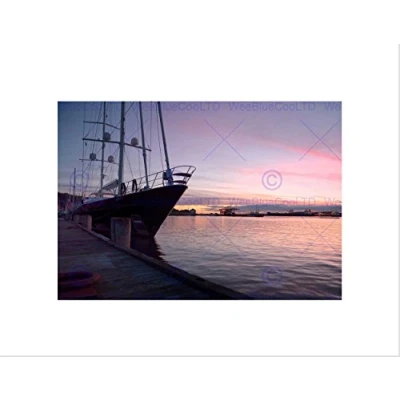 Wee Blue Coo PINK SKY SUNSET TALL SHIP BOAT SEA BLACK FRAME FRAMED ART PRINT PICTURE B12X9455