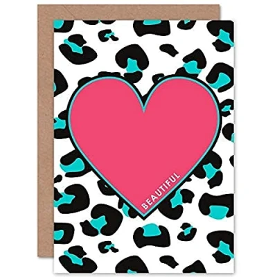 Wee Blue Coo Pink Teal Leopard Reverse Beautiful Greeting Card With Envelope Inside Premium Quality