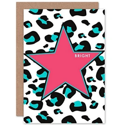 Wee Blue Coo Pink Teal Leopard Reverse Bright Greeting Card With Envelope Inside Premium Quality