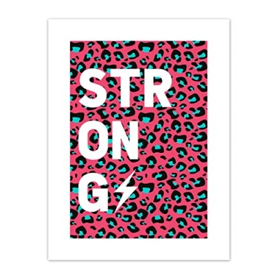 Wee Blue Coo Pink Teal Leopard Word Strong Art Print Canvas Premium Wall Decor Poster