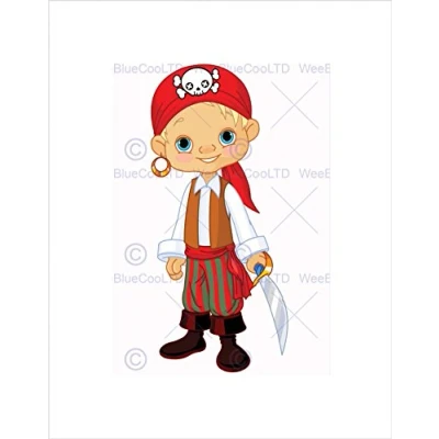 Wee Blue Coo PIRATE BOY KIDS CARTOON ILLUSTRATION RED BLACK FRAMED ART PRINT PICTURE B12X8752