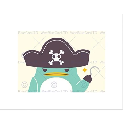 Wee Blue Coo PIRATE PENGUIN CARTOON KIDS ANIMAL CHILDREN BLACK FRAMED ART PRINT B12X9019