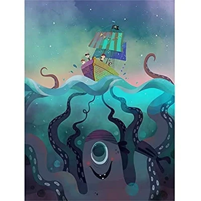 Wee Blue Coo Pirate Ship Octopus Wall Art Print