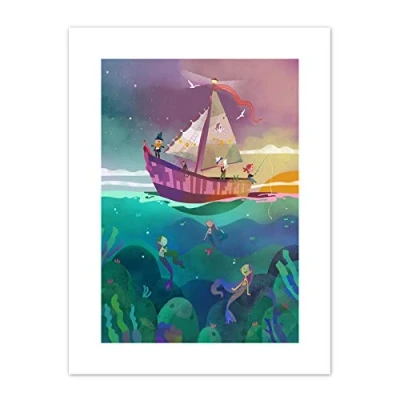 Wee Blue Coo Pirates Mermaids Canvas Wall Art Print