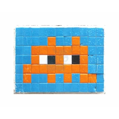 Wee Blue Coo Pixel Art Monster Space Invader Orange Tiles Canvas Print
