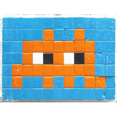 Wee Blue Coo Pixel Art Monster Space Invader Orange Tiles Large Print Poster Wall Decor 18x24 inch