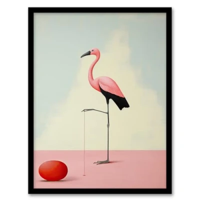 Wee Blue Coo Playful Flamingo Pastel Colour Pink Surreal Oil Painting Artwork Framed Wall Art Print A4
