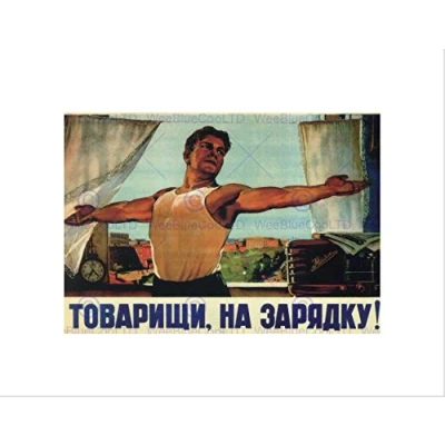 Wee Blue Coo POLITICAL COMMUNISM HEALTH FITNESS COMRADE USSR FRAMED ART PRINT MOUNT B12X4515