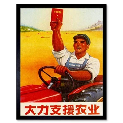 Wee Blue Coo Political Communist China Support Farm Mao Red Book Art Print Framed Poster Wall Decor 12X16 Inch