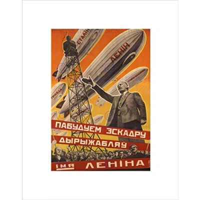 Wee Blue Coo POLITICAL MILITARY AIRSHIP LENIN SOVIET UNION VINTAGE ADVERT ART PRINT B12X1042