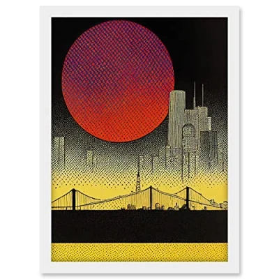 Wee Blue Coo Pop Art Red Sunset Sun Over Manhattan Bridge Skyline Black Yellow Grey Artwork Framed A3 Wall Print