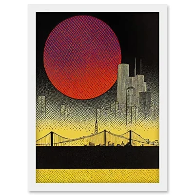 Wee Blue Coo Pop Art Red Sunset Sun Over Manhattan Bridge Skyline Black Yellow Grey Artwork Framed Wall Print A4