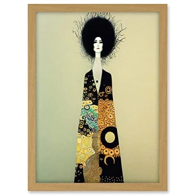 Wee Blue Coo Portrait of Beautiful Woman Gustav Klimt Style Dress Artwork Framed A3 Wall Art Print
