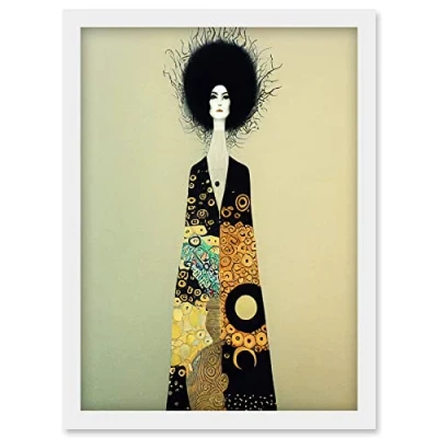 Wee Blue Coo Portrait of Beautiful Woman Gustav Klimt Style Dress Artwork Framed Wall Art Print A4