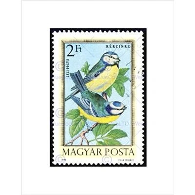 Wee BLUE Coo POSTAGE STAMP HUNGARY 2 FORINT NUNBIRD FINCH FRAMED ART PRINT B12X11035