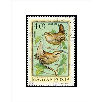 Wee Blue Coo POSTAGE STAMP HUNGARY 40 FORINT BIRD WREN JENNY FRAMED ART PRINT MOUNT B12X11038