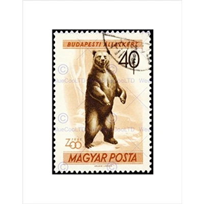 Wee Blue Coo POSTAGE STAMP HUNGARY 40 FORINT BROWN BEAR ZOO BUDAPEST FRAMED PRINT B12X11039