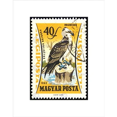 Wee Blue Coo POSTAGE STAMP HUNGARY 40 FORINT OSPREY BIRD PREY FRAMED ART PRINT B12X11040