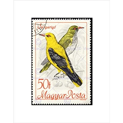 Wee Blue Coo POSTAGE STAMP HUNGARY 50 FORINT ORIOLE YELLOW GREEN BIRD FRAMED PRINT B12X11041