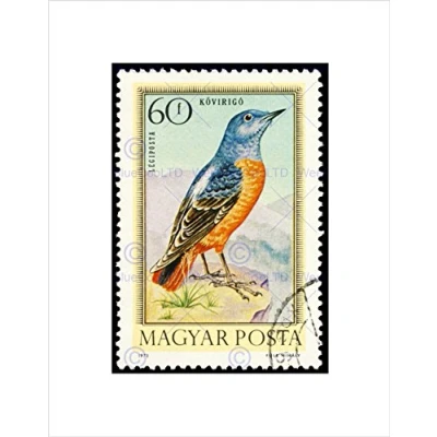 Wee Blue Coo POSTAGE STAMP HUNGARY 60 FORINT ROCK THRUSH BIRD FRAMED ART PRINT B12X11043