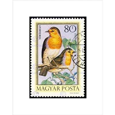 Wee Blue Coo POSTAGE STAMP HUNGARY 80 FORINT ROBIN BIRD NEW FRAMED ART PRINT MOUNT B12X11044