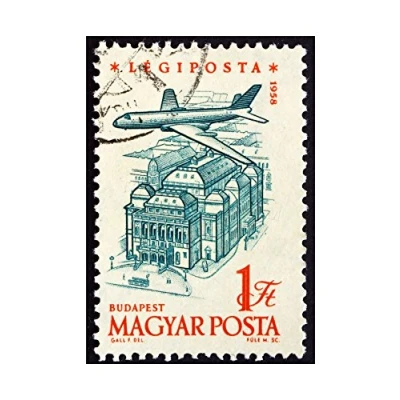 Wee Blue Coo Postage Stamp Hungary Vintage Plane Budapest Photo Wall Art Print