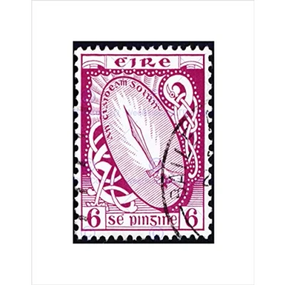 Wee Blue Coo POSTAGE STAMP IRELAND VINTAGE SWORD LIGHT BLACK FRAMED ART PRINT B12X8778