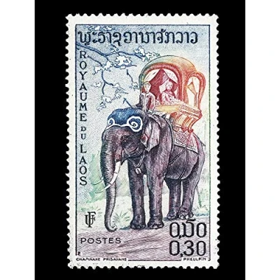 Wee Blue Coo Postage Stamp Laos Elephant Vintage Philately Art Print Poster Wall Decor 12X16 Inch