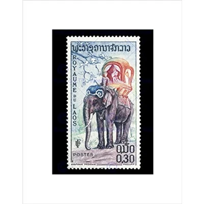 Wee Blue Coo POSTAGE STAMP LAOS ELEPHANT VINTAGE PHILATELY BLACK FRAMED ART PRINT B12X8661