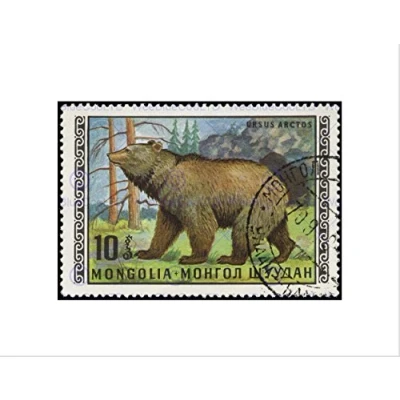 Wee Blue Coo POSTAGE STAMP MONGOLIA 10 TOGROG RUSSIAN BROWN BEAR FRAMED ART PRINT B12X11047