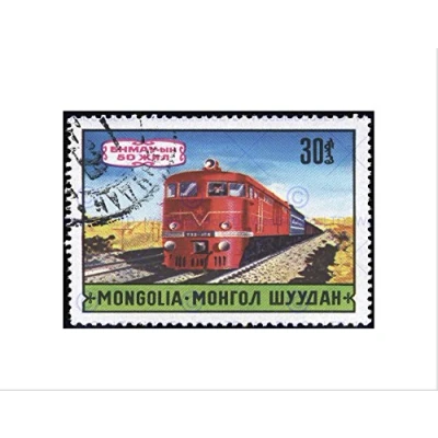 Wee Blue Coo POSTAGE STAMP MONGOLIA RUSSIAN TRAIN ELECTRIC ENGINE FRAMED ART PRINT B12X11048