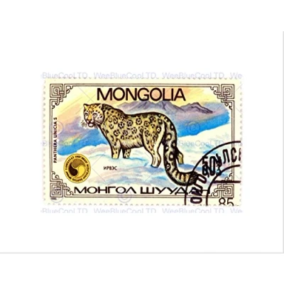 Wee Blue Coo POSTAGE STAMP PANTHERA SNOW LEOPARD MONGOLIA VINTAGE FRAMED ART PRINT B12X8023