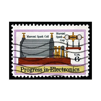 Wee Blue Coo Postage Stamp United States 6 Cents Marconi Spark Coil Wall Art Print