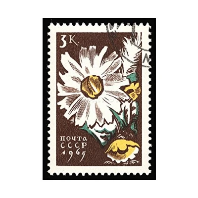Wee Blue Coo Postage USSR Soviet Stamp Plant Flower 1965 Daisy Picture Wall Art Print