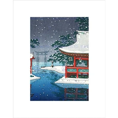 Wee Blue Coo POSTCARD JAPAN PAGODA TORII SHINTO TEMPLE GATE WINTER SNOW ART PRINT B12X12565