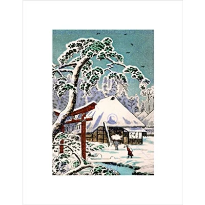 Wee Blue Coo POSTCARD JAPAN WINTER SCENE TORII TEMPLE GATE SNOW TREE FRAMED PRINT B12X12567
