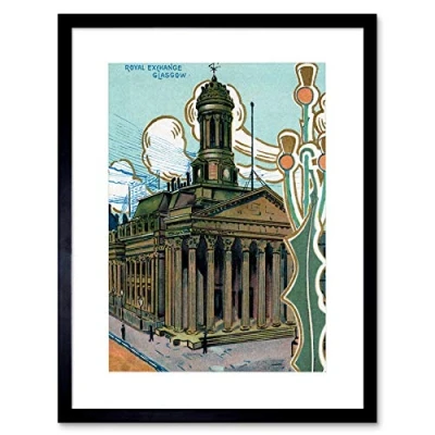 Wee Blue Coo Postcard Tourism Glasgow Royal Exchange Thistle Scotland Framed Wall Art Print