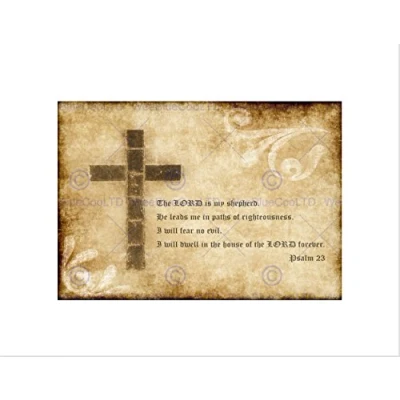 Wee Blue Coo PSALM 23 LORD SHEPHERD CROSS CHRISTIAN RELIGIOUS QUOTE ART PRINT B12X13829
