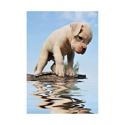 Wee Blue Coo PUPPY DOG BOXER WATER REFLECTION BLACK FRAME FRAMED ART PRINT PICTURE B12X8956