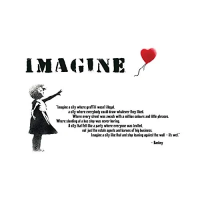 Wee Blue Coo Quote Banksy Imagine City Graffiti Girl Balloon Wall Art Print