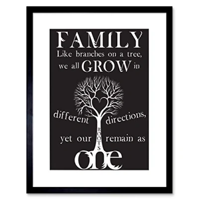 Wee Blue Coo Quote Family Roots B&W Heart Tree One Framed Wall Art Print