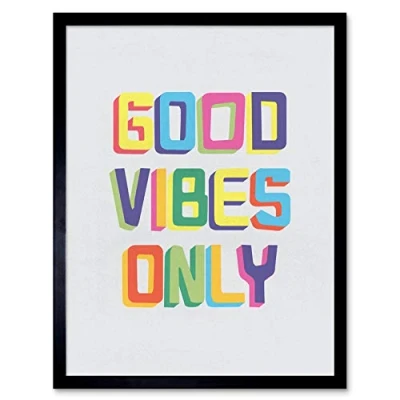 Wee Blue Coo Quote Good Vibes Only Colourful Art Print Framed Poster Wall Decor 12x16 inch