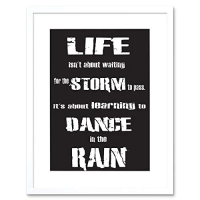 Wee Blue Coo Quote Motivation Typography Learn Dance In Rain Black Framed Wall Art Print