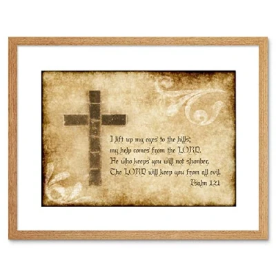 Wee Blue Coo Quote Psalm 1 I Lift My Eyes Cross Christian Religion Framed Wall Art Print
