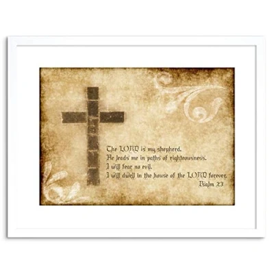Wee Blue Coo QUOTE PSALM 23 LORD SHEPHERD CROSS CHRISTIAN RELIGION FRAMED PRINT F97X6175