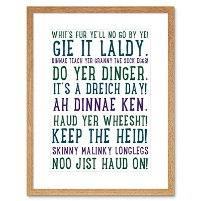 Wee Blue Coo Quote Scottish Sayings Phrases Scotland Typograph Framed Wall Art Print