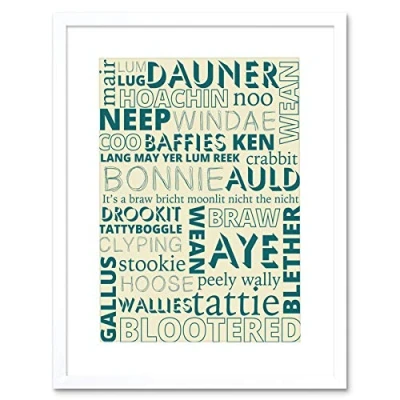 Wee Blue Coo Quote Scottish Scotland Sayings Words Typograph Framed Wall Art Print