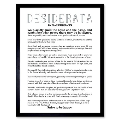 Wee Blue Coo Quote Typograph Phrase Poetic Prose Ehrmann Desiderata Art Print Framed Poster Wall Decor 12X16 Inch